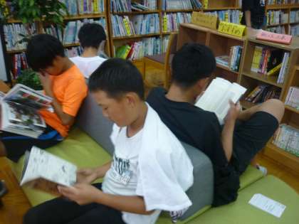 授業後の余った時間に、学校図書館に行って、読書に親しむ時間をとっています。
