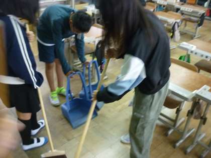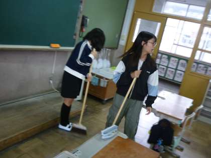 「京都一美しい教室」と自信をもって言えるほどに、友達と声をかけ合いながら掃除に励んでいます。