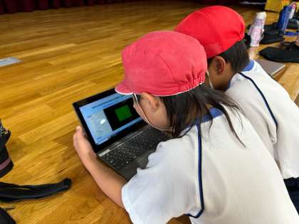 子どもたちは、タブレットで動画を見て技の確認をしたり、友だちと相談しながら練習をしたりしました。