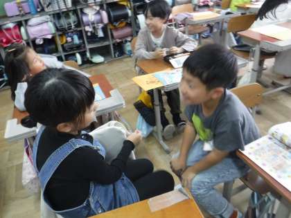 大文字のアルファベットの学習をしました。みんなで歌って楽しみながら学んでいる様子でした。お友だちとのあいさつも上達してきています。