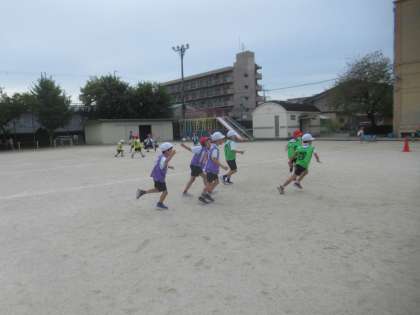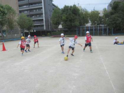 一生懸命ボールを追いかけたり、パスをしたりしていました。