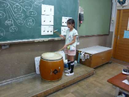 和太鼓をたたいてみました。