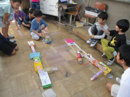 今日は、3時間目に、2年生に招待してもらって、2年生手作りのおもちゃで遊びました。楽しい雰囲気の中、順番に並んで楽しむ1年生。とっても素敵でした。2年生のみなさん、ありがとうございました。