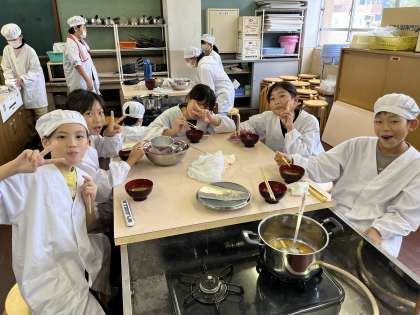 完成した、みそ汁をみんなでおいしくいただきました。