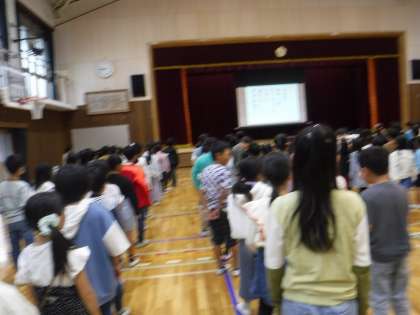 今日は図書委員さんからのお話がありました。ほとんどの子が姿勢を正して話を聞くことができています。そんな姿を見て、4月から成長しているなぁと改めて感じさせられました。