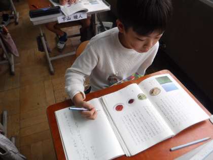 大豆がいろいろな食べ物に変えることにおどろく子どもたちです。宿題の音読は長く感じるかと思いますが、長い文章を読む習慣をつけてほしいと思います。また、大豆がどのように変身しているのかも意識して読めるといいですね。
