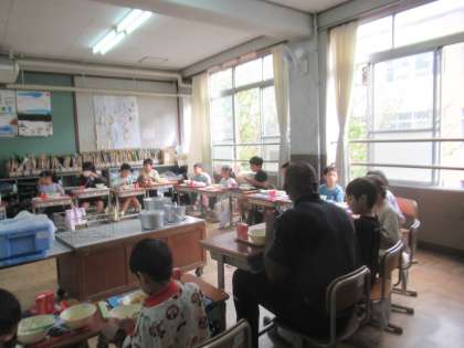 ALTと一緒に給食を食べました。