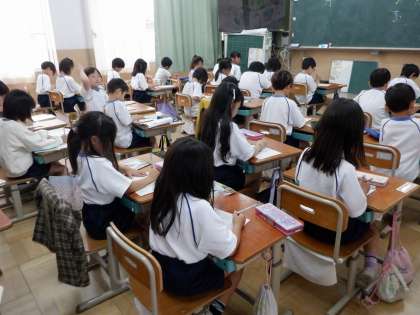 書写の時間です。学習の最後のワークシートを姿勢よく丁寧に書いています。