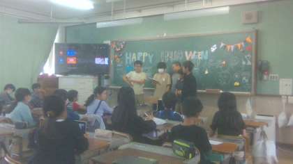 学級会の「ハロウィンパーティーをしよう」という議題の話し合いを