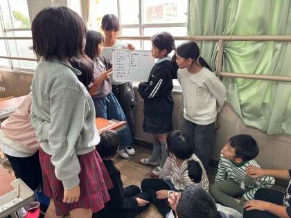 12月のお祭りの話し合いが、国語科の時間で終わらなかったため、急遽、時間を取り、話し合いました。全員が納得するような話し合いの難しさを痛感しながらも、みんなで話し合おうとする姿勢がとても素敵でした。