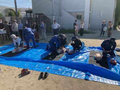 となりのブースでは、救急時の心肺蘇生やAEDの体験をしました。