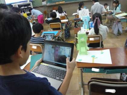 タブレットで写真を撮って、