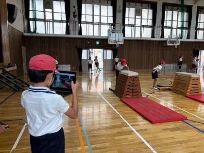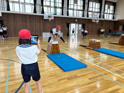 これまで練習してきた技を、友だち同士で撮り合いました。