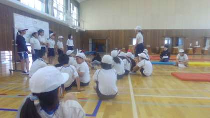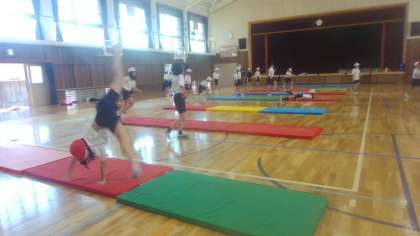 マット運動が始まりました。自分たちで技のコツを考えたりして進んで取り組んでいます。