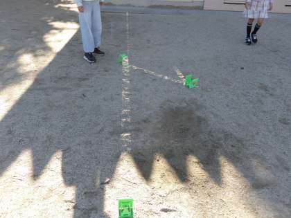 はね返した日光はどのように進むのか実験をしました。また、はね返した日光をつないでみました。