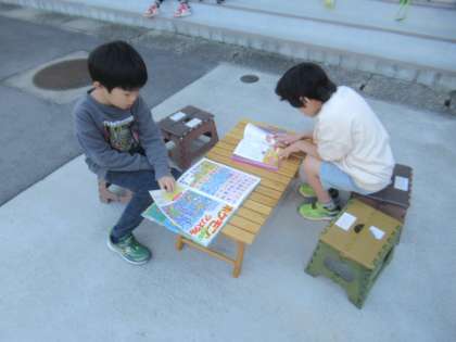 国語の学習で読んだ「スイミー」を見つけ、嬉しそうにスタッフの方に読んでみせていました。