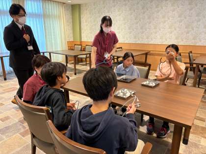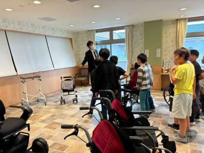 まずは、施設で使っている福祉器具の体験をしました。