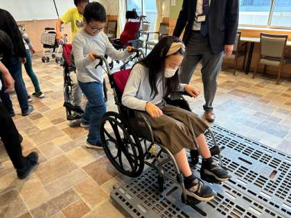 普段体験できない車いすや、医療器具の体験をさせていただきました。