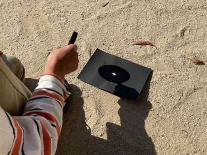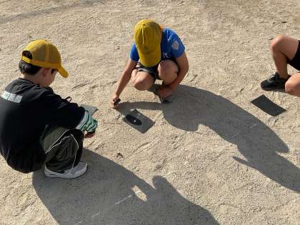 虫めがねで日光を集めるとどうなるのか、実験をしました。「けむりがあがった!」「すごくまぶしい!」などたくさんの発見があったようです。