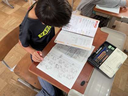 学習したことをいかして練習問題に取り組んでいます。練習問題が終わればミライシードにも取り組んでいます!どんどん問題を解いている姿が素敵です!