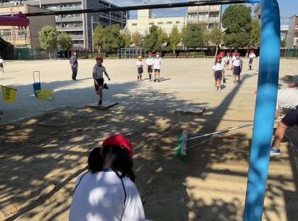 記録に挑戦をしています。「記録がのびた!」「踏み切りがうまくいかなかったな…。」と一喜一憂しながらも頑張っています。