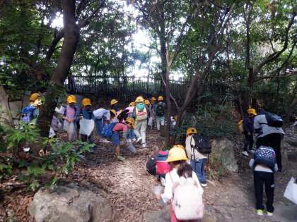 ありました、ありました!散歩コースから一歩林に入ったところに、どんぐりがたくさん落ちていました!「あった!」「こっちも!」と歓声が上がっていました。