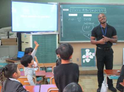 ALTのジョシュア先生に来ていただき、英語に触れることができました。「たのしかったしまたしつもんしたい。」「えいごがはなせるようになりたい。」と感想をかいていました。