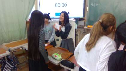 お店を開いて英語でお買い物体験をしました。学んだ表現を使ってどんどんコミュニケーションが生まれ、とても生き生きとした学習となりました。