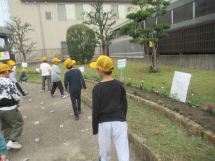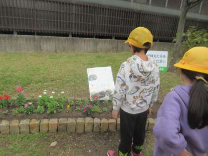 YOUYOUパークに立ち寄った際には5年生が植えた花や作った看板に気づいていました。