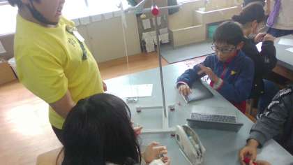 今日はおもりの重さを変えて決まりを調べました。またもや意外な結果に子どもたちは驚いていました。