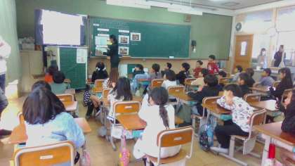 今日の参観は、お隣の国・韓国の学習をしました。先週、ALTの先生にアメリカのことを教えてもらった子どもたち、今日は韓国です。韓国語で「アンニョンハセヨ」のあいさつをしたり、学校の様子や食べ物のことを知ったり、絵本の読み聞かせを聞いたりする中で、「(日本と)にてるな〜。」とつぶやく人がいました。「カウイ・パウイ・ポ」のじゃんけんも盛り上がりました。ふりかえりでは、「かんこくの人と友だちになったら、じゃんけんをしたいな。」「かんこくのたべものを知ってうれしかった。かんこくへ行ってみたいな。」と知ってうれしかった感想をたくさん書くことができました。おうちでも、今日のがんばりを褒めていただき、韓国に関する話題を出してみてください。