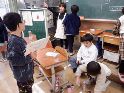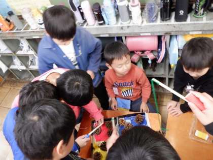 今日の中間休みは、3年生があきまつりに遊びに来てくれました。