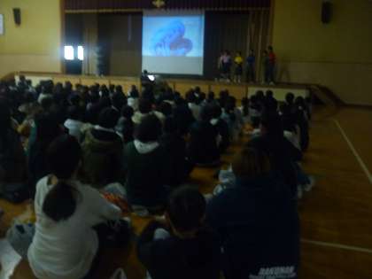 今日は、小中交流会で、洛南中学校へ行きました。
