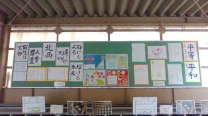 人権月間ということで、洛南中学校ブロックの各校と作品の交流を実施しました。普段他校の作品を見ることはあまりないと思います。懇談会や学校に御用の際はぜひご覧ください。1年生の靴箱の上に掲示しています。