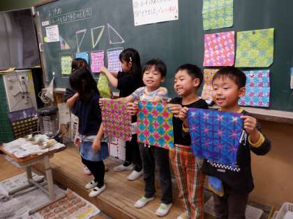 できた紙を広げたら「できました!」というのもルールの1つです。とても楽しむことができました。