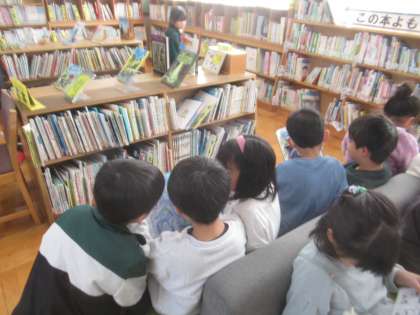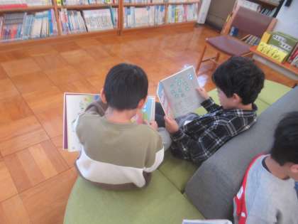 その後、本を返した子どもたちは、お互いの本を見せ合いながら読んだり、同じ本を一緒に読んだり仲良く読書に親しんでいました。