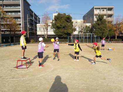 ポートボールの学習も終盤になってきました。はじめと比べるとチームで作戦を決めて空いているところに動いて積極的にボールを取りに行く姿が見られるようになってきました。ただもう少し、改善できそうなところもたくさんあるので最後まで頑張っていきましょう!
