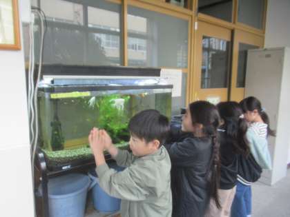 飼育委員会が企画してくれた餌やり体験に参加しました。