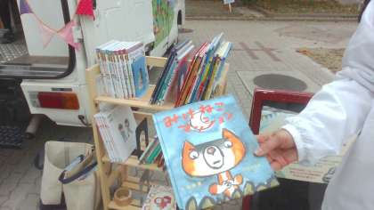 今日は、日本新薬の移動図書館「キラキラ未来ゴー」の開館日でした。