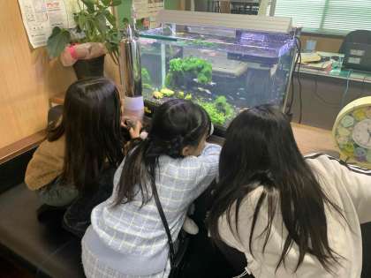 横では子ども達が水槽を眺めて、談話を
