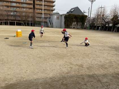 体育の学習ではゆっくりペース走となわとびをしています。なわとびでは、いろいろな跳び方に挑戦しています。大繩にも挑戦中です!