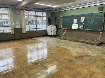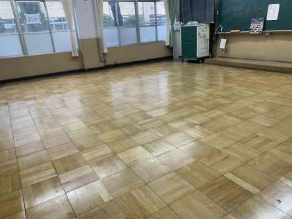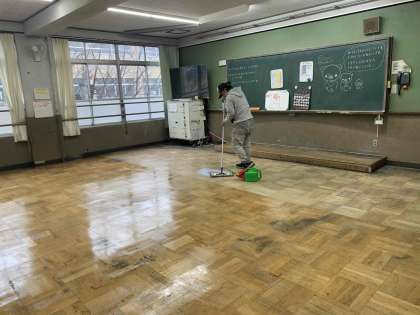 学校では早速、ワックスがけを行っています。