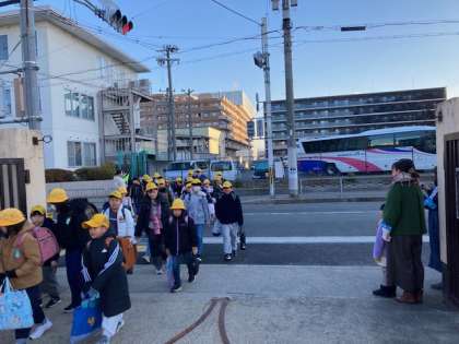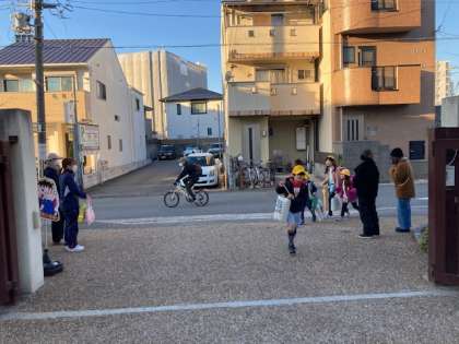 PTAの方も門の前で子どもたちに挨拶で迎えてくれました。