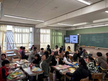 久しぶりの給食。友達と食べるごはんは格別おいしいようで、明るい空気が終始漂っていました。