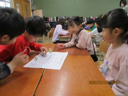夏休み明けにも楽しんだすごろくを、冬休み明けにも楽しみました。久しぶりに顔を合わせて楽しむことができて笑顔があふれていました。