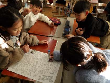 グループで「冬休みすごろく」をしました。いろんなマスがあるのですが、お話を楽しんだり、少し体を動かしたりと楽しんでいました!
