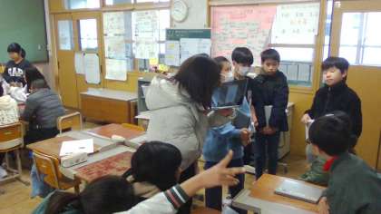 なりたいわたしに向かって、みちしるべをつくりました。これからどんな風に生きていくのか、少しずつ考えています。今日は1組と2組で交流をしました。いろいろな人の考えにふれ、自分の考えを広げてほしいと思います。