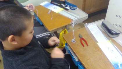 針金を曲げたり組み合わせたりして、「おもしろい!」「きれい!」と思う形をつくります。ダイナミックに表現したり、繊細に表現したりと個性が垣間見える時間となりました。
