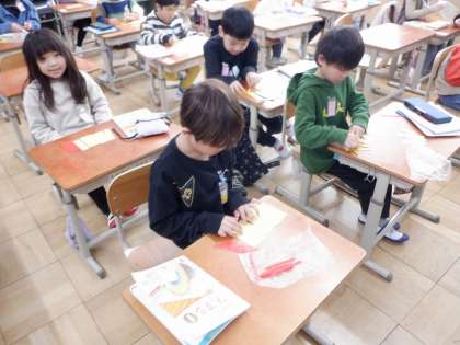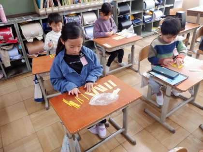3学期は、20を超える数の学習をします。数え棒を使って、何十何の数を表しています。