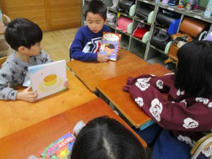班で、友達の好きな本について聞いたり質問をしたりしました。話し方も上手になりましたが、聞き方もよくなってきて、質問もできるようになりました。